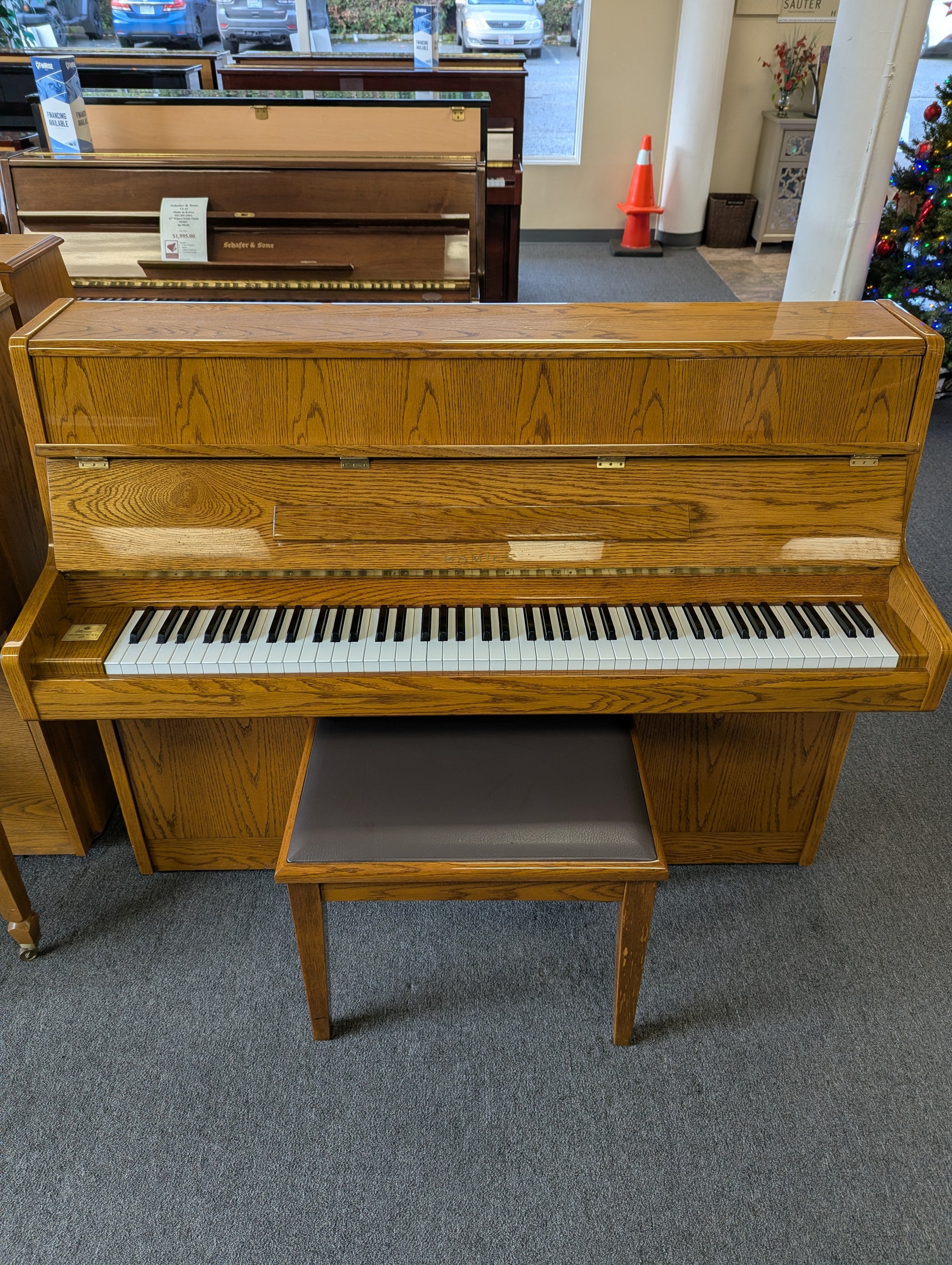 This is a good dependable piano and is a perfect upgrade from a digital piano or keyboard. Built in 1989 in Korea, Polished Oak finish